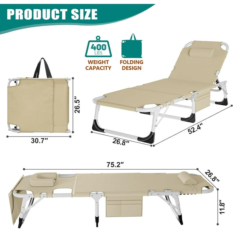 Amazon Slsy Sleeping Cots for Adults 5 Position Folding Chaise Lounge Chairs Outdoor Portable Folding Bed Cot Lounge Chair for Beach Lawn Very well made.