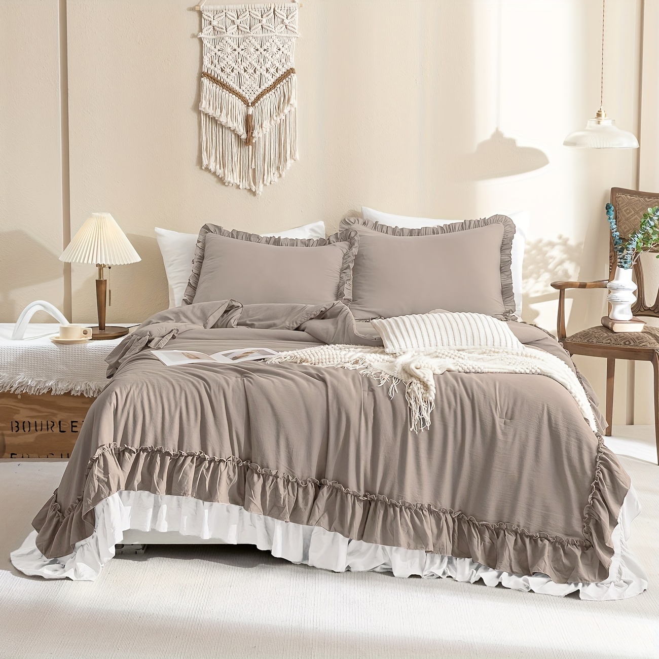 farmhouse taupe white bedding comforter set season vintage Temu Very well made.