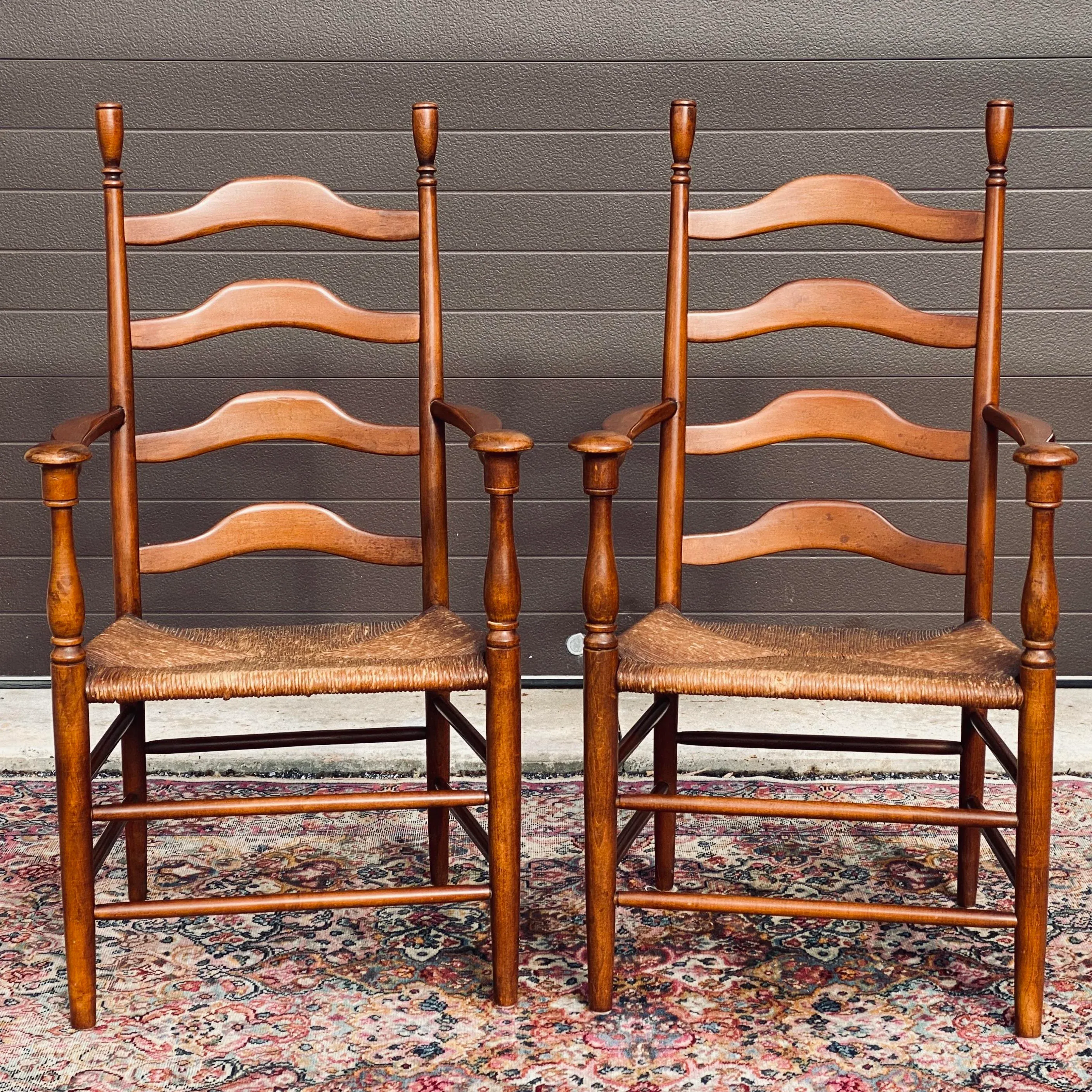 Vintage Ladder Back Rush Seat Mushroom Cap Farmhouse Arm Chairs a Pair Chairish Very well made.
