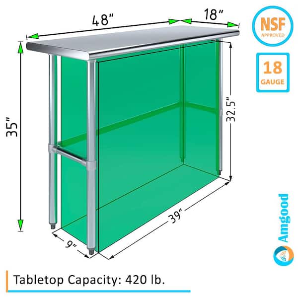 AmGood 18 X 48 Stainless Steel Work Table with Open Base Wheels Food Prep Utility Work Station NSF Certified Very well made.