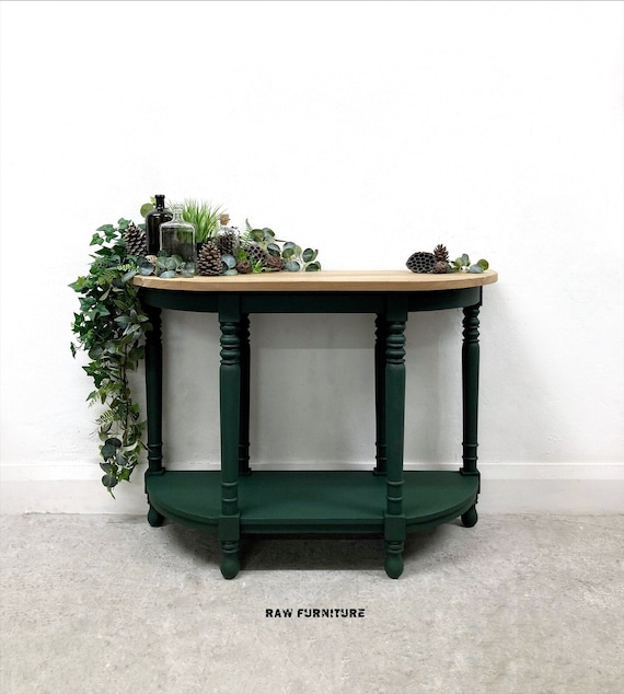 Demilune Rustic Console Table. Rustic Hallway Table. Sofa Table. Green Console Table. Hand Painted. Hand Crafted. Etsy Very well made.