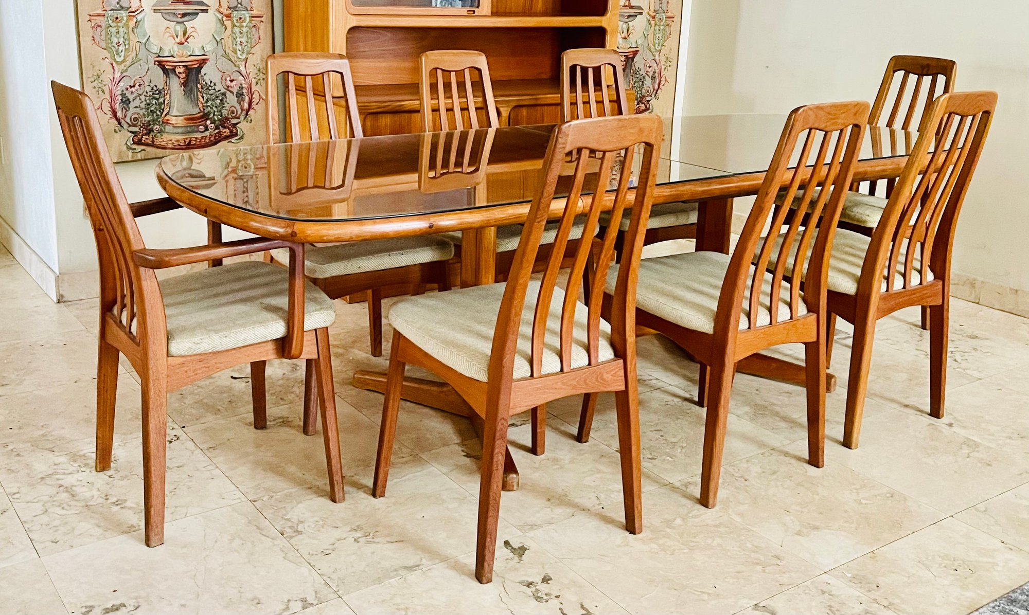 Benny Linden Mid Century Teak Wood Dining Table With 2 Leaves Glass Top And 8 Benny Linden Design Chairs 147693 Auctionninja Very well made.