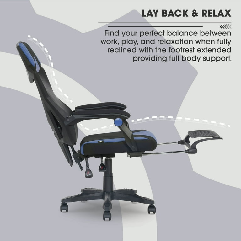 Gamer Gear Gaming Office Chair with Extendable Leg Rest Blue Black Fabric Upholstery Very well made.