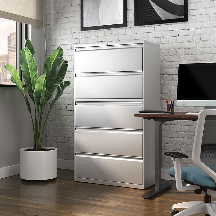 Staples 5 Drawer Lateral File Cabinet Letter Legal Size Lockable 67.63 H x 36 W x 18.63 D Light Gray 60918 17640 Staples Very well made.