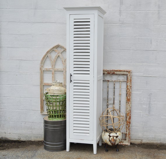 Tall White Narrow Kitchen Panty Solid Wood Louver Shutter Door Linen Storage Cabinet Mudroom Laundry Bedroom Closet 5 Shelf Organizer Etsy Very well made.