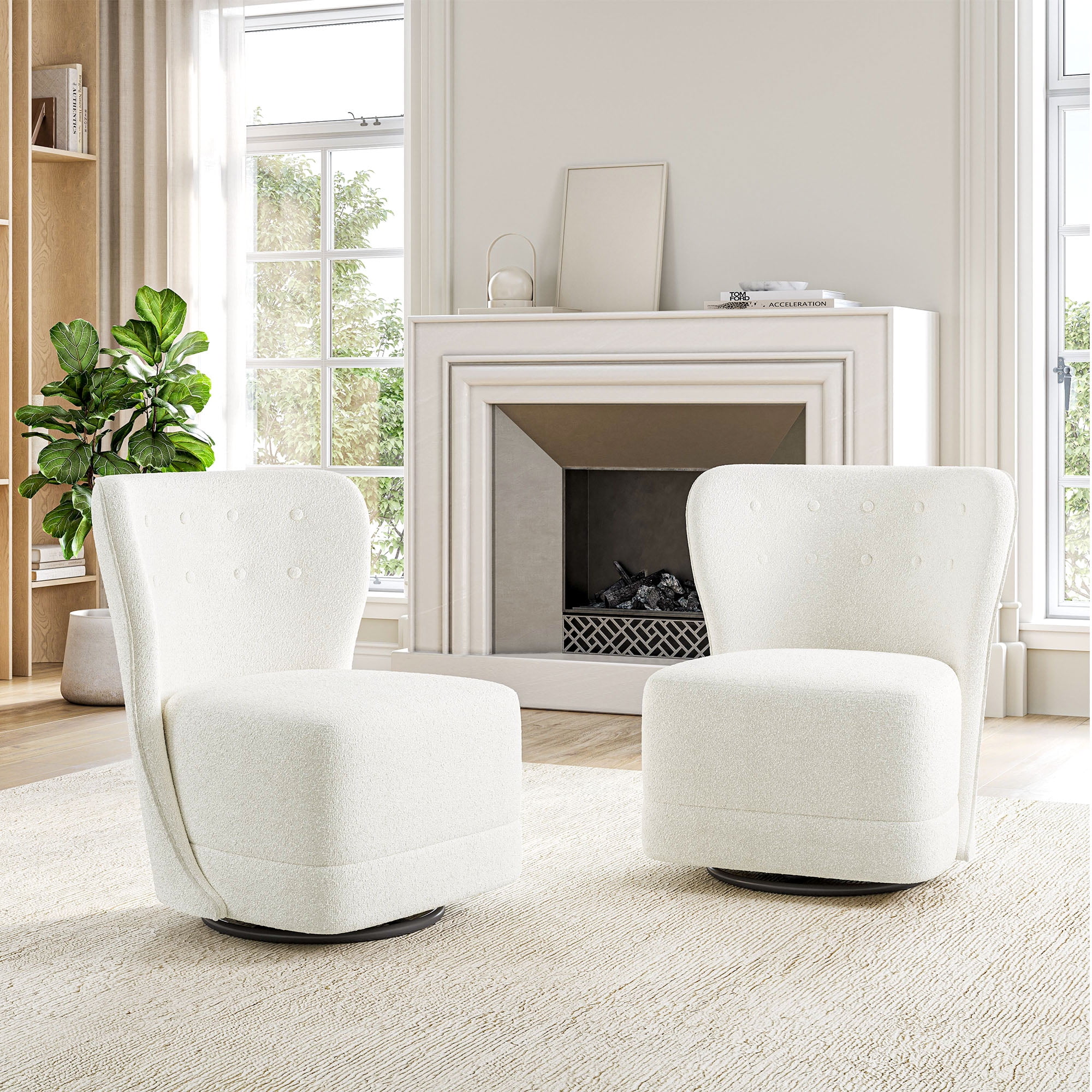 BELLEZE Swivel Accent Chairs Set of 2 Modern Upholstered 360 Swivel Barrel Chairs Comfy Small Club Chairs for Nursery Hotel Bedroom Office Lounge Cortona White Walmart Very well made.