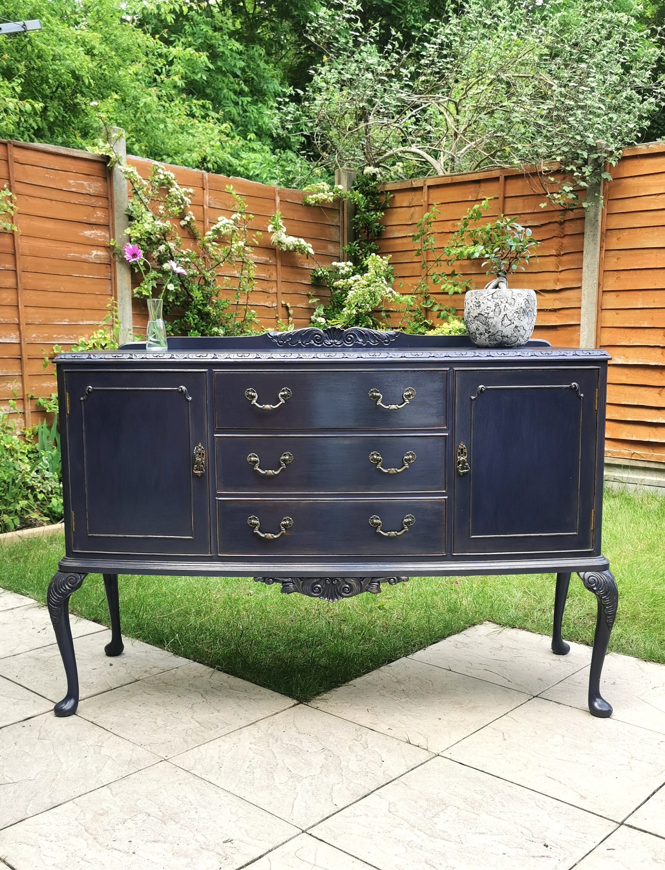 Antique Sideboard Painted Navy Blue Queen Ann Style Etsy Very well made.