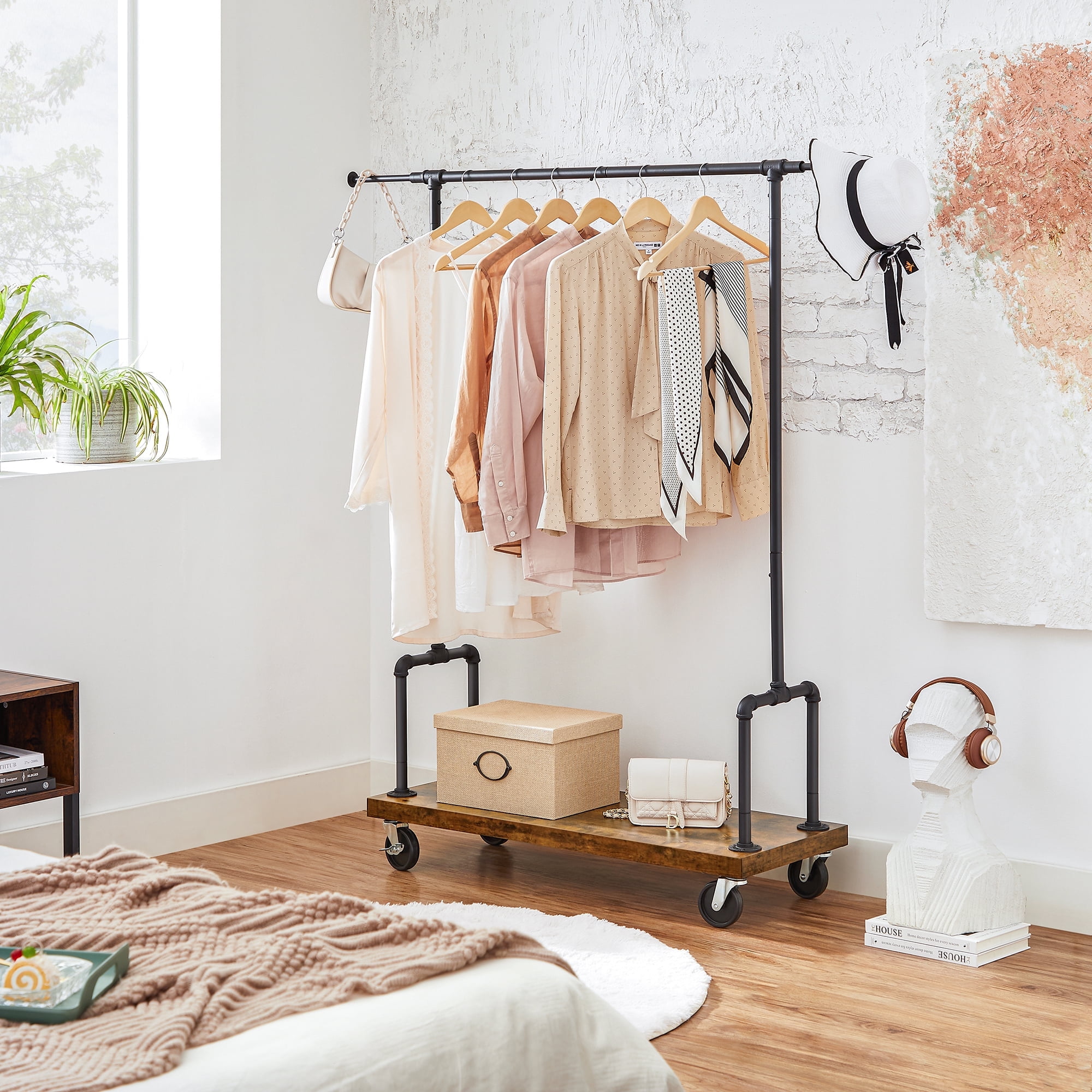 VASAGLE Clothes Rack Clothing Rack with Wheels 43.3 66.9 Inch Extendable Bar Height adjustable Garment Rack 332 lb Load Rustic Brown and Black Very well made.