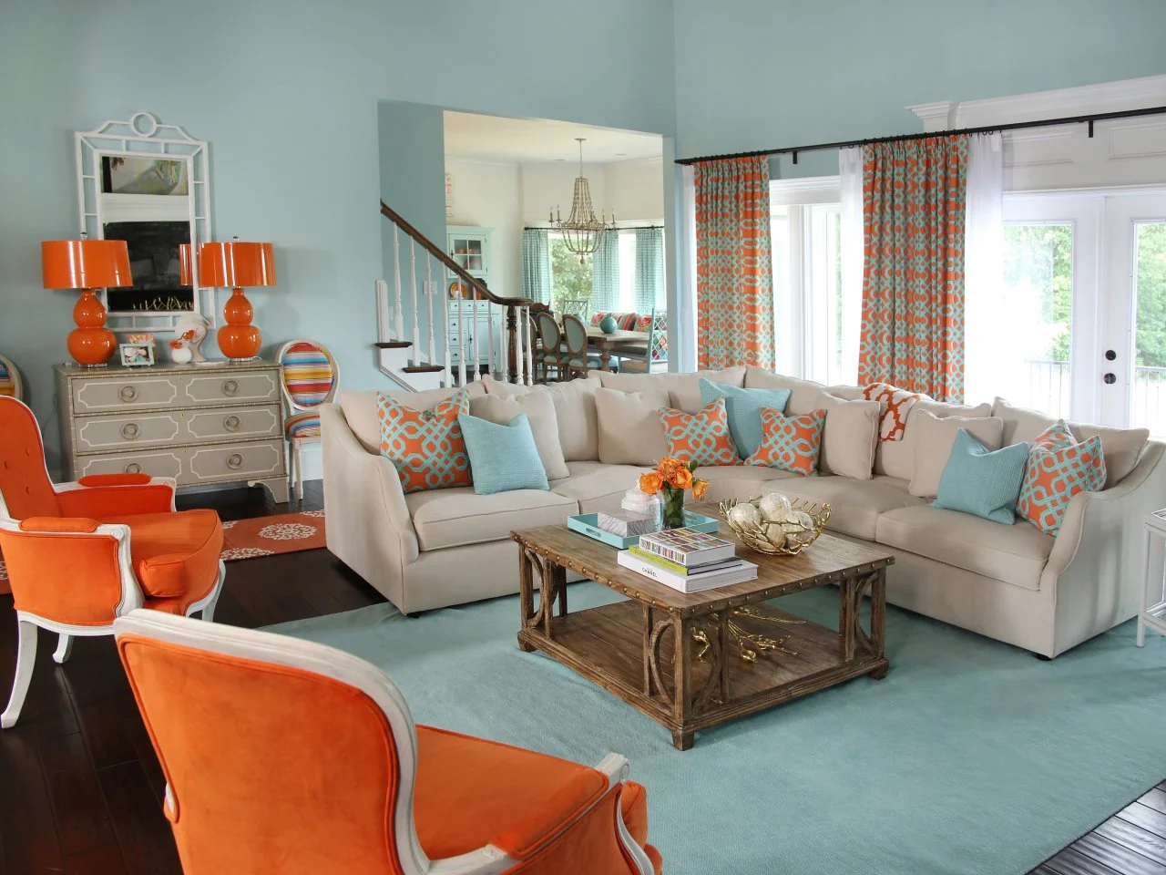 Orange and Aqua Blue Coastal Living Room HGTV Very well made.