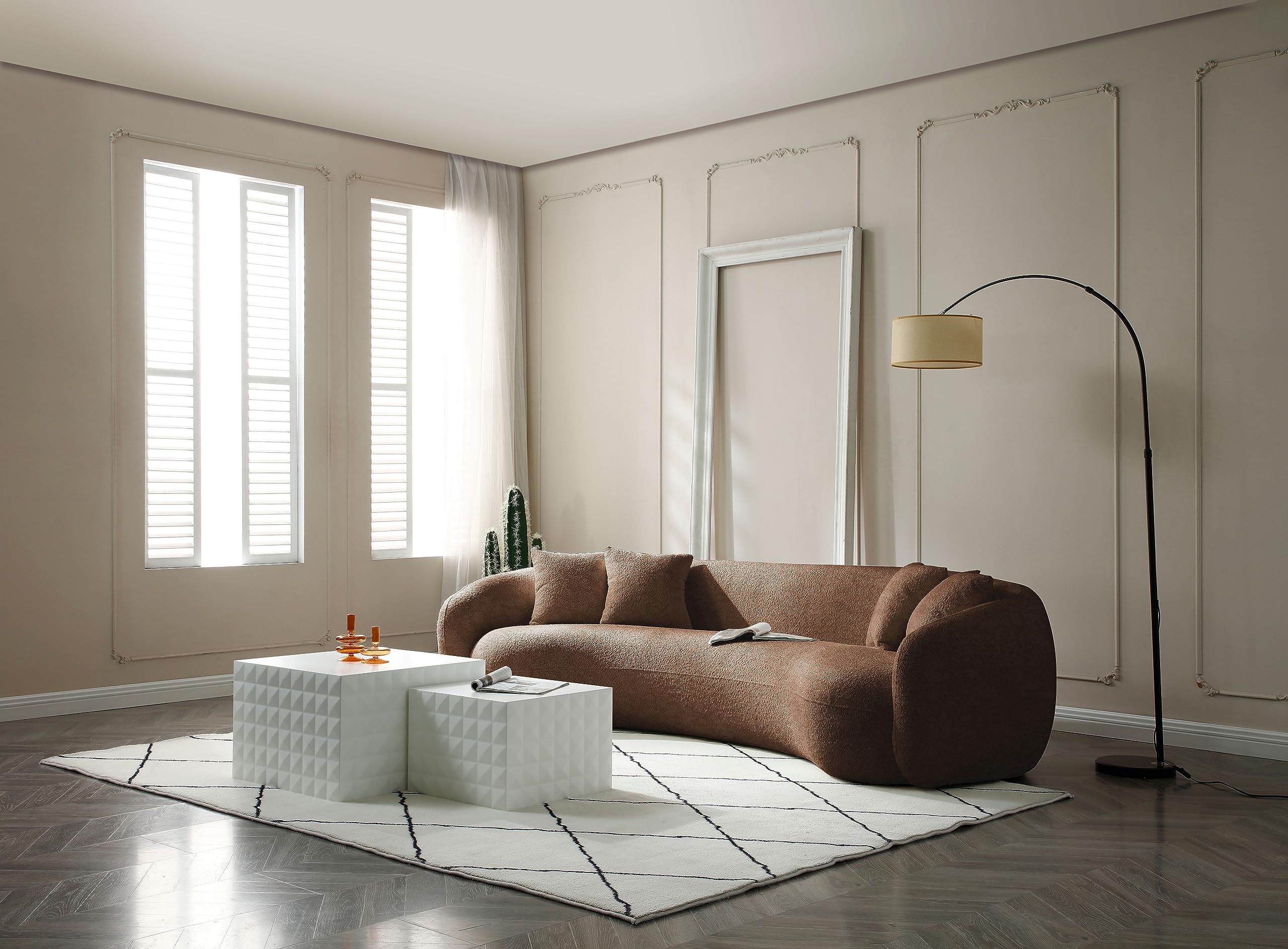 Minimalist Style Boucle Fabric Upholstered Curved Sofa 5 Seater Half Moon Design Cloud Couch with Throw Pillows Free Assembly Living Room Very well made.