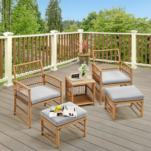 5 Pieces Outdoor Rattan Conversation Sets Accent Chair with Ottoman Set Patio Furniture Set with Arm Lounge Chair Coffee Table and Ottomans for Very well made.