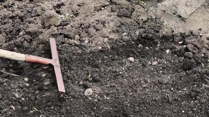 Soil preparation in the garden with a rake Very well made.