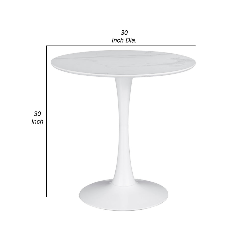 Loxi 30 Inch Round Dining Table White Faux Marble Top Tulip Accent Body BM302430 Very well made.