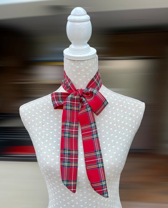 Red Tartan Skinny Scarf Royal Stewart Plaid Bow Long Thin Sixties Mod Tie Etsy UK Very well made.