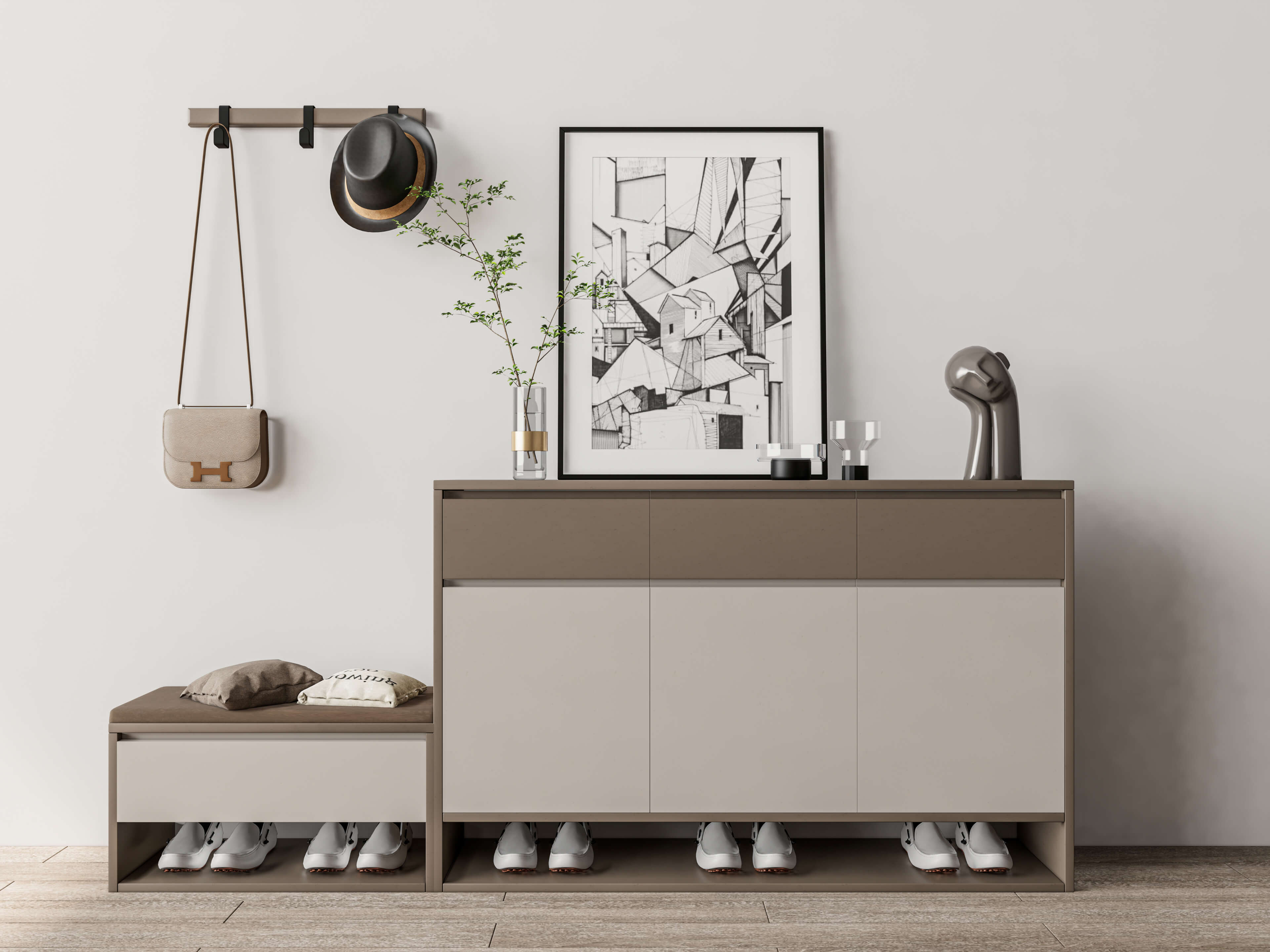 Shoe Cabinet Sideboard Entrance Cabinet Full Scene 3D Model by IID Studio Very well made.