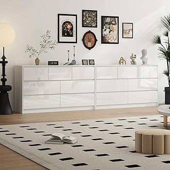Amazon White Malm Dresser for Bedroom 55 Inch Long Dresser High Gloss Dresser with 7 Drawers Modern Large Wood Chest of Drawer Handle Free Very well made.