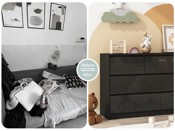Amazon Black Malm Dresser for Bedroom 55 Inch Long Dresser High Gloss Dresser with 7 Drawers Modern Large Wood Chest of Drawer Handle Free Very well made.