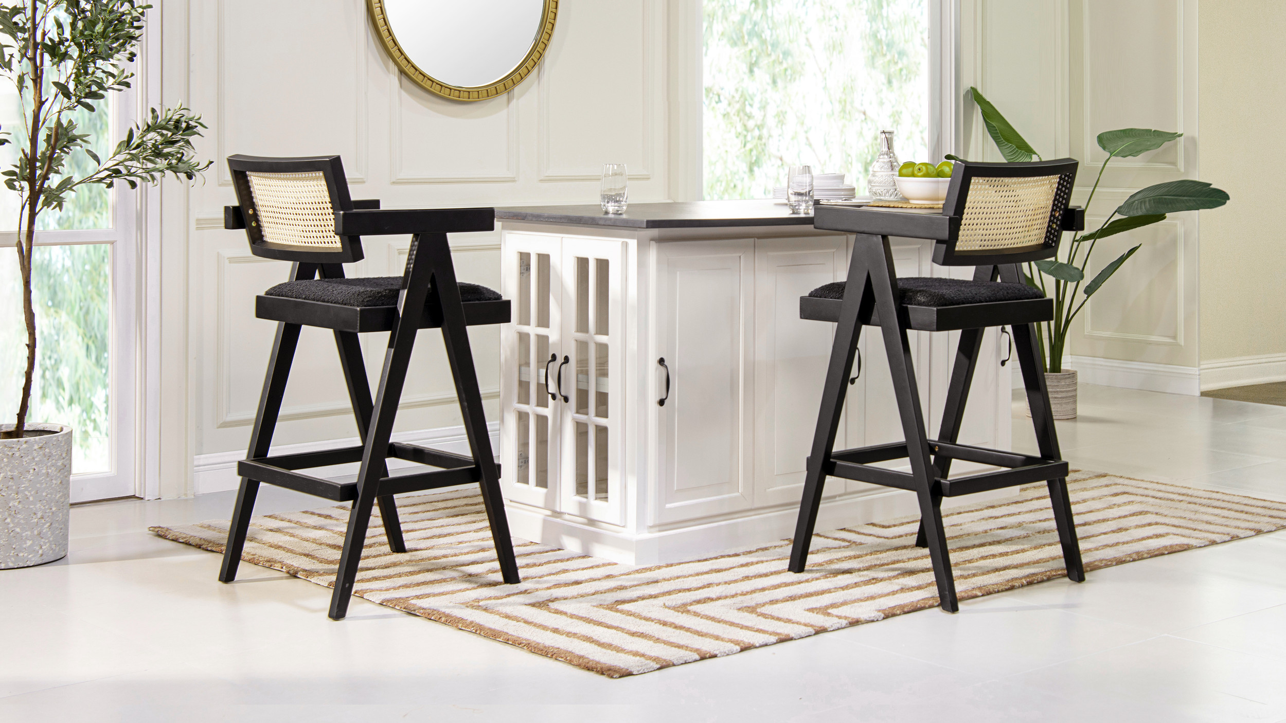 Jennifer Taylor Home Milan 29.5 Modern Resin Webbing Back Bar Stool with Arms Set of 3 Ebony Black Boucle Very well made.
