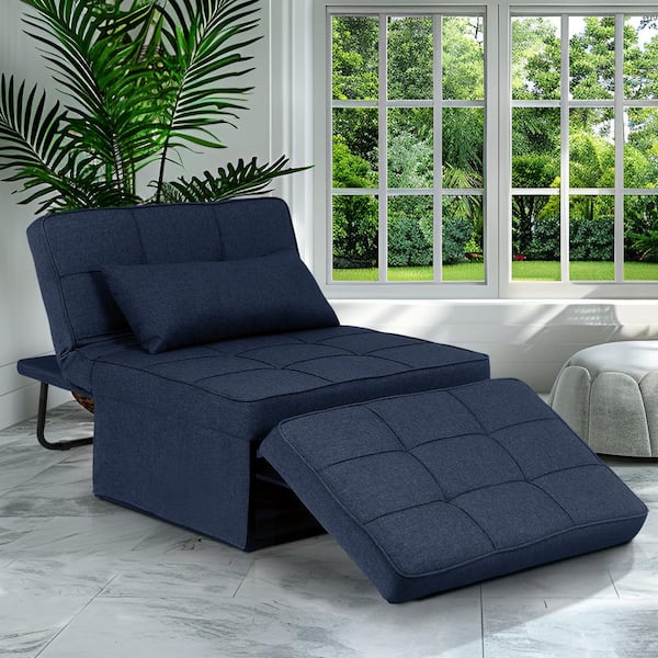 4 in 1 71 in. W Dark Blue Folding Linen Full Size Sofa Bed Convertible Chair Ottoman Very well made.