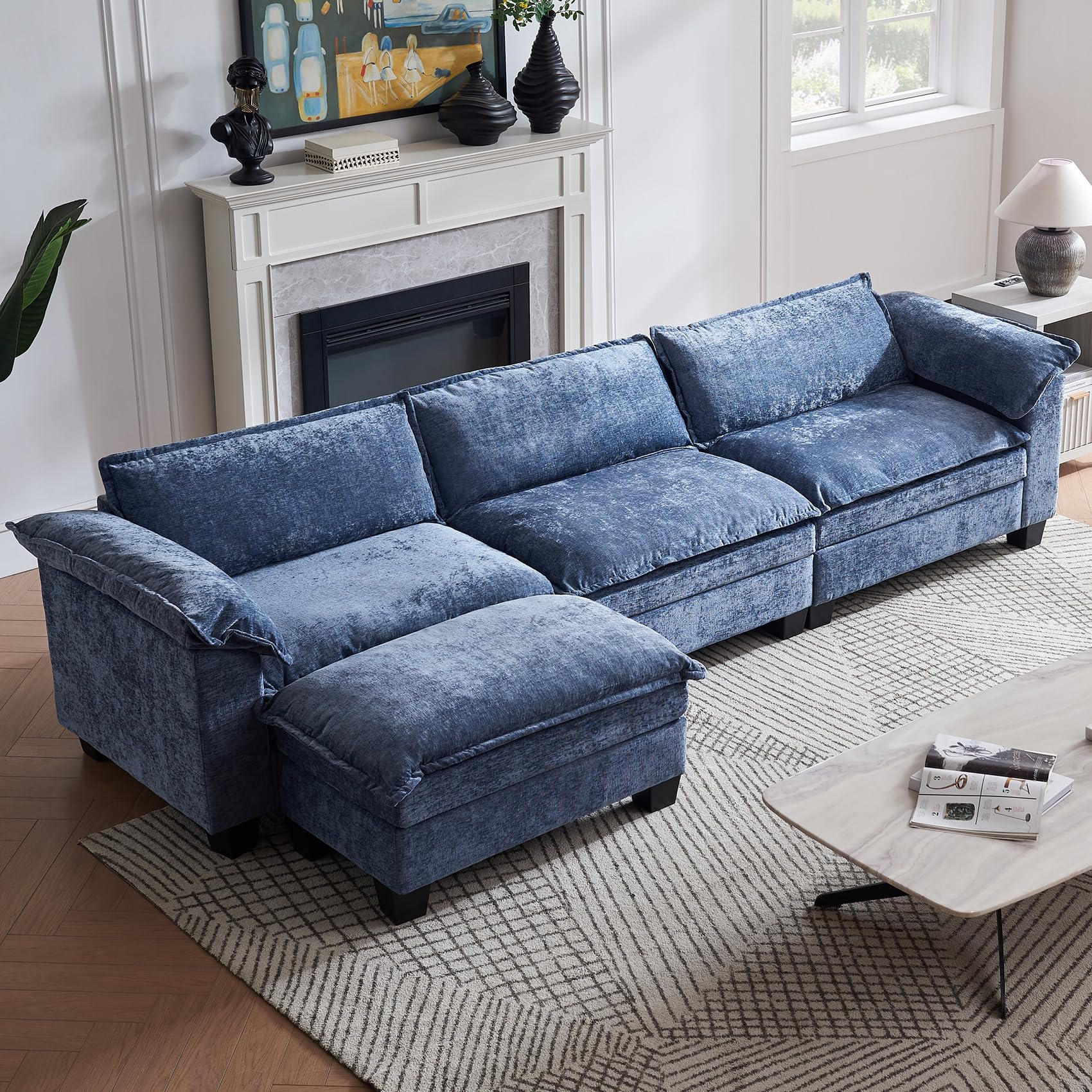 120 Sectional Sofa Comfy Cloud Couch for Living Room Modern Sofa Sleeper Deep Couches with Ottoman Latitude Run Fabric Blue Chenille Very well made.