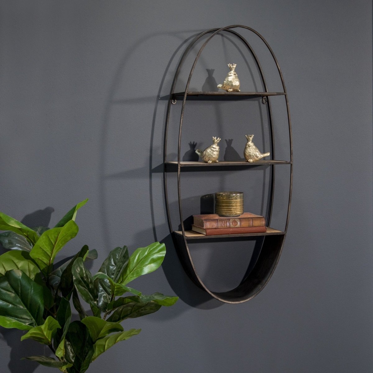 Unbranded Oval 5.5 in. x 23.75 in. x 24 in. Brown Wood and Iron Floating 3 Tier Decorative Wall Shelf 11165 Very well made.