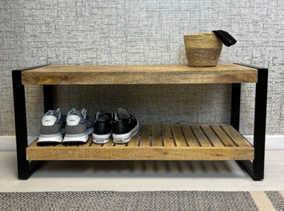 Industrial Solid Mango Wood Metal Shoe Rack Bench Bali Collection Very well made.