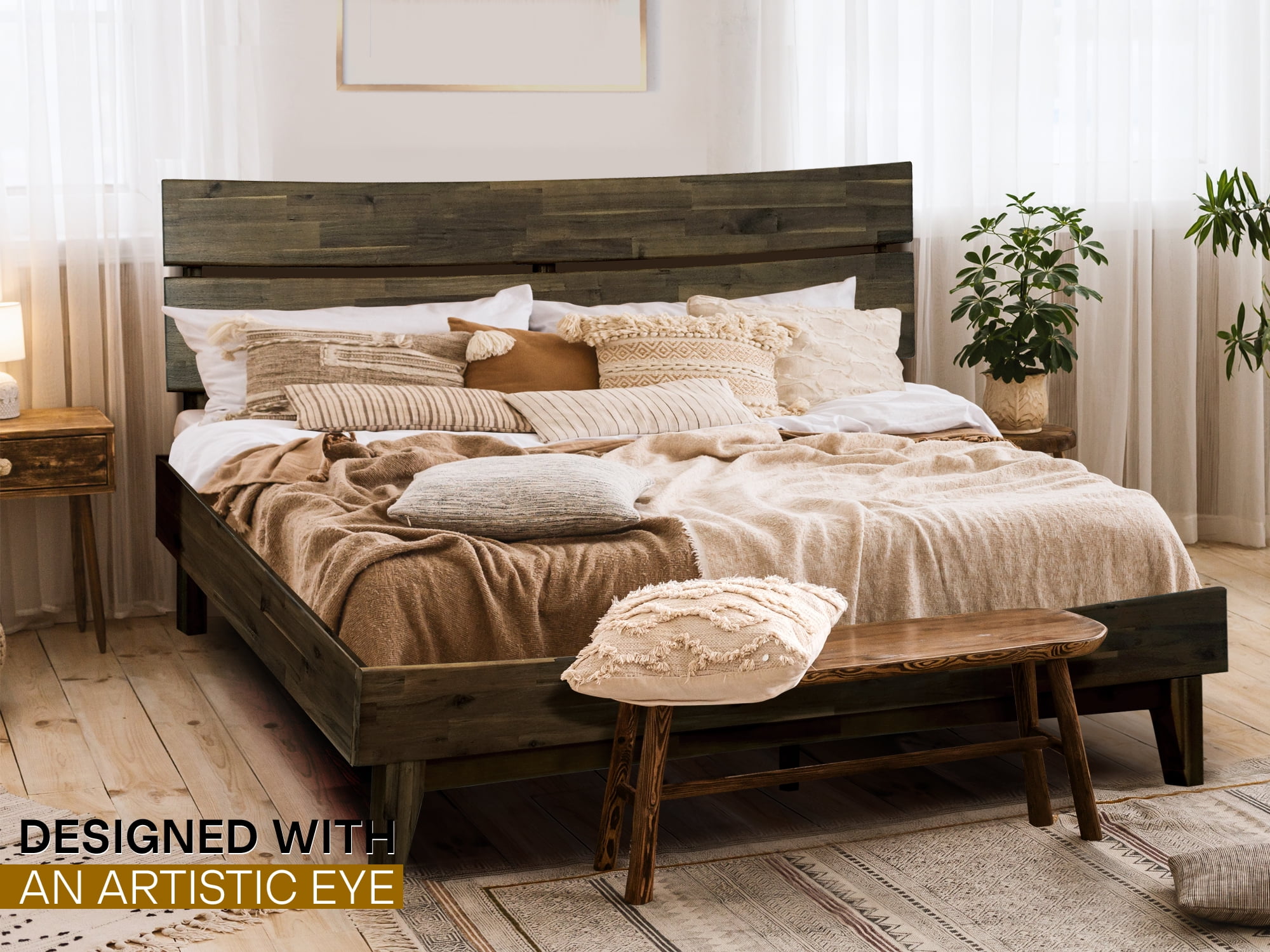Amazon Acacia Aurora Queen Bed Frame with Headboard Solid Wood Platform Bed Queen Size Bed Frame Contemporary Signature Wood Bed Compatible with All Mattress Types Non Slip Noise Free Easy Assembl... Very well made.