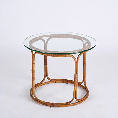 Mid Century Italian Round Rattan Bamboo Coffee Table with Glass Shelf 1960s for sale at Pamono Very well made.