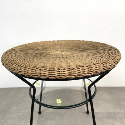 Round Coffee Table in Metal and Rattan Wicker with Glass Top 1960s for sale at Pamono Very well made.