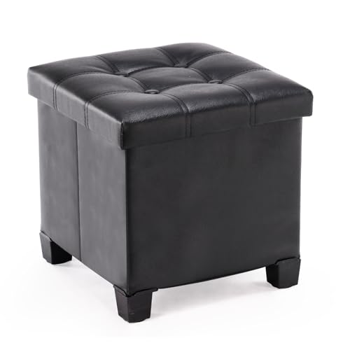 Apicizon 15 inches Small Storage Ottoman Foot Stool Black PU Faux Leather Foldable Storage Footrest with Plastic Legs for Living Room Bedroom Home Kitchen Amazon Very well made.