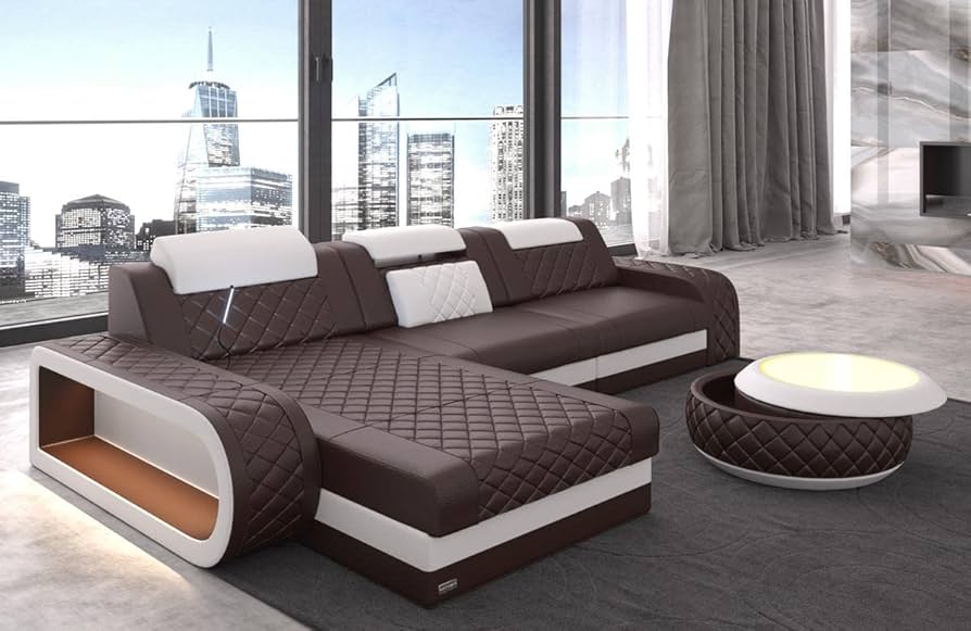 Sofa Berlin L Form Ecksofa Leder mit LED Licht Ledersofa Ottomane Couch mit Kopfstutzen Ottomane Links Braun WeiB Amazon Kuche Haushalt Wohnen Very well made.