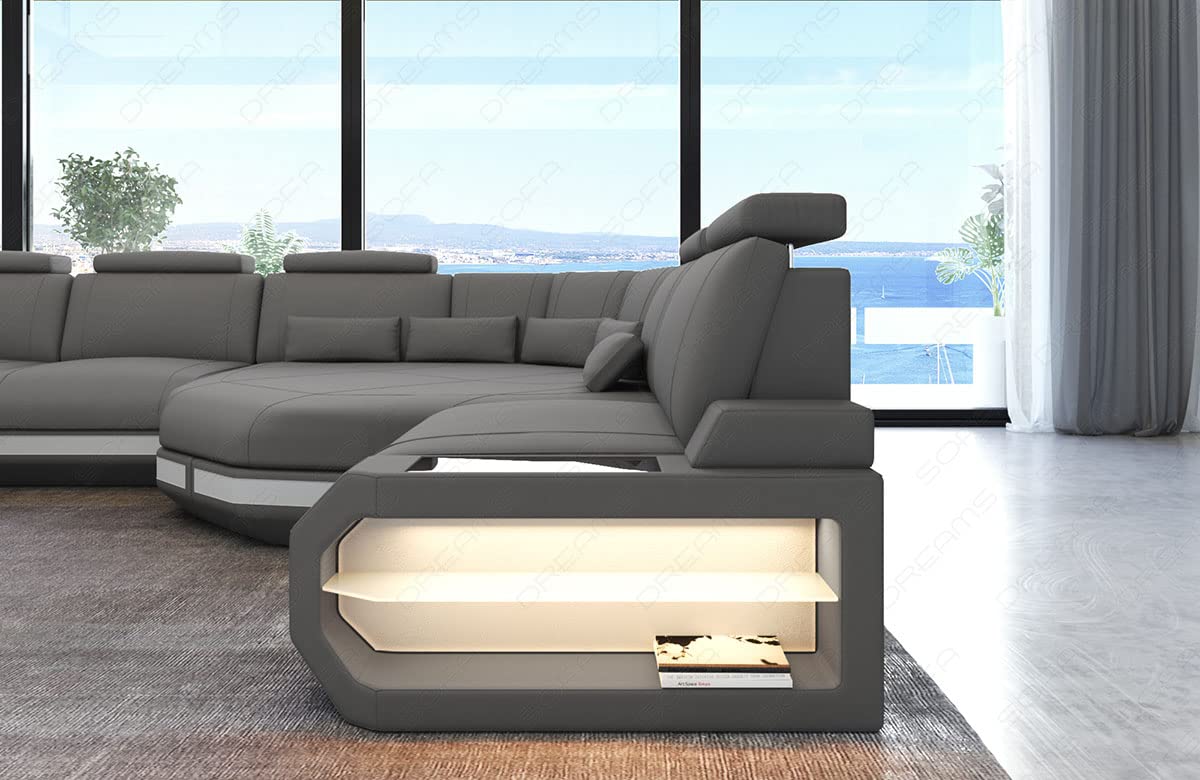 Sofa Dreams Stoff Wohnlandschaft Asti mit LED Beleuchtung verstellbare Kopfstutzen Ottomane Mikrofaser Ausrichtung wahlbar GroBe Ecke rechts Weiss Hellgrau Amazon Kuche Haushalt Wohnen Very well made.