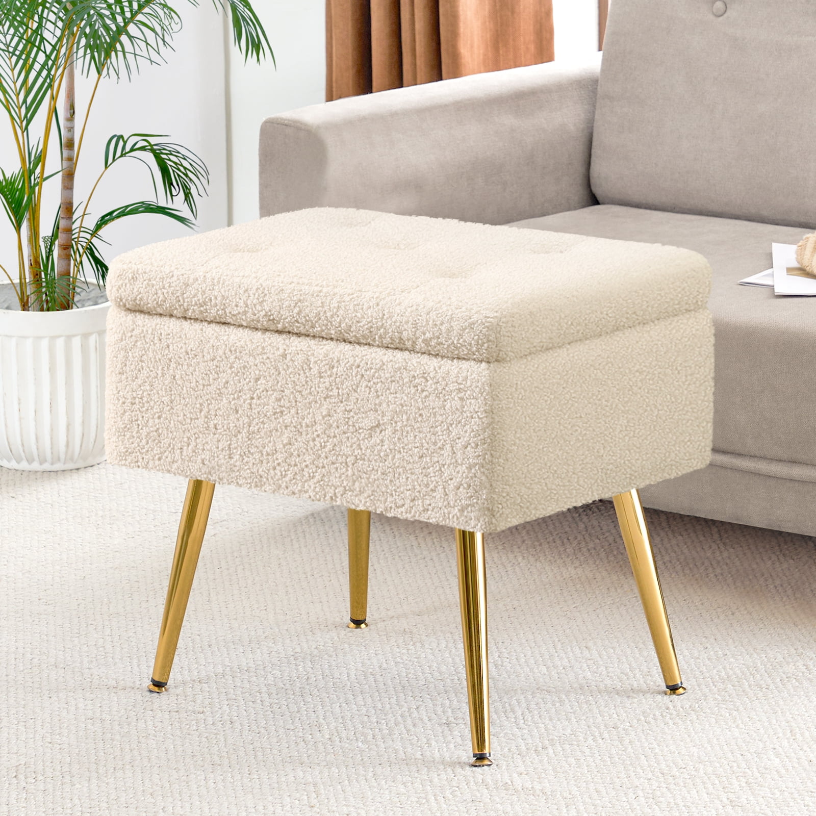 Faux Fur Upholstered Storage Ottoman Rectangle Vanity Bench Modern Makeup Stool Ivory Walmart Very well made.