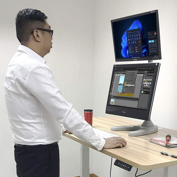 Electric Sit Stand Desk Converter for 2 Monitors Mount It Very well made.