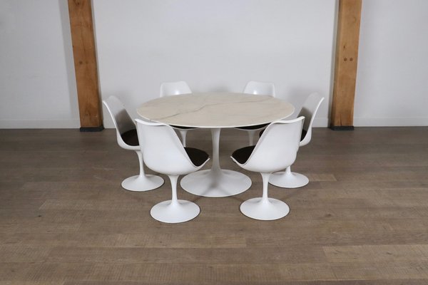 Carrara Marble Pedestal Tulip Dining Table Round Inspired by Eero Saarinen France Son Very well made.
