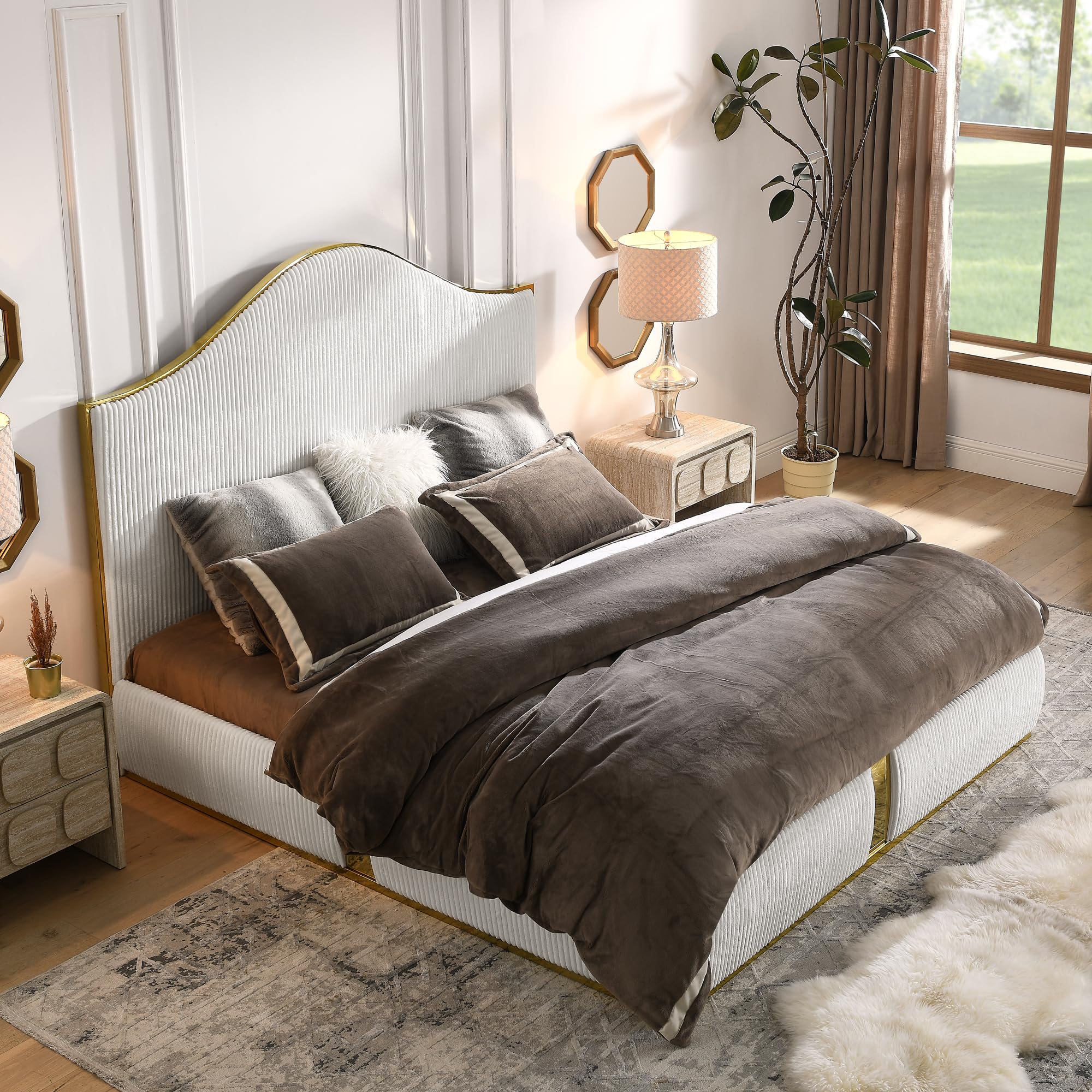 Amazon DEINPPA Luxury King Size Bed Frame with Tall Camelback Headboard Electroplated Metal Bed Frame Corduroy Upholstered Platform Bed No Box Spring Needed Beige Home Kitchen Very well made.