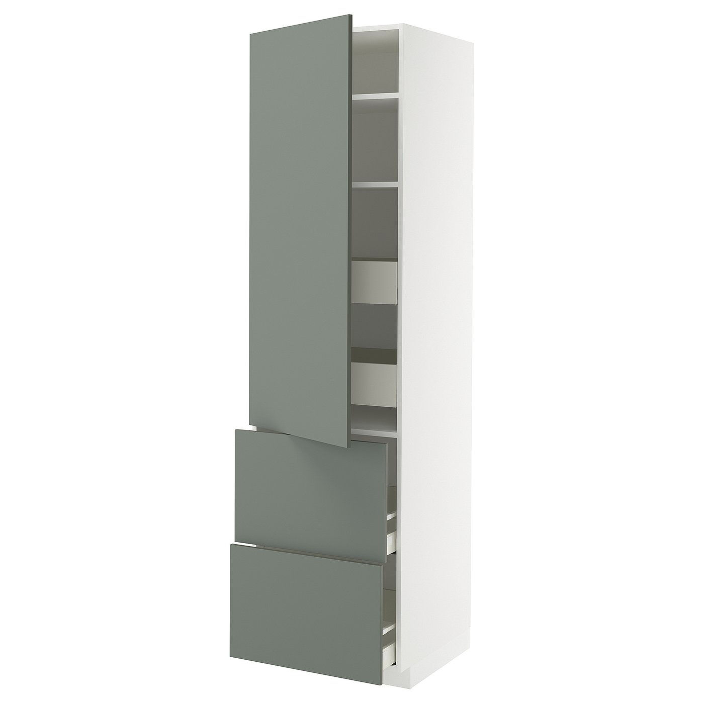 METOD MAXIMERA Hi cab w shlvs 4 drawers dr 2 frnts white Nickebo matt grey green 60x60x220 cm Very well made.