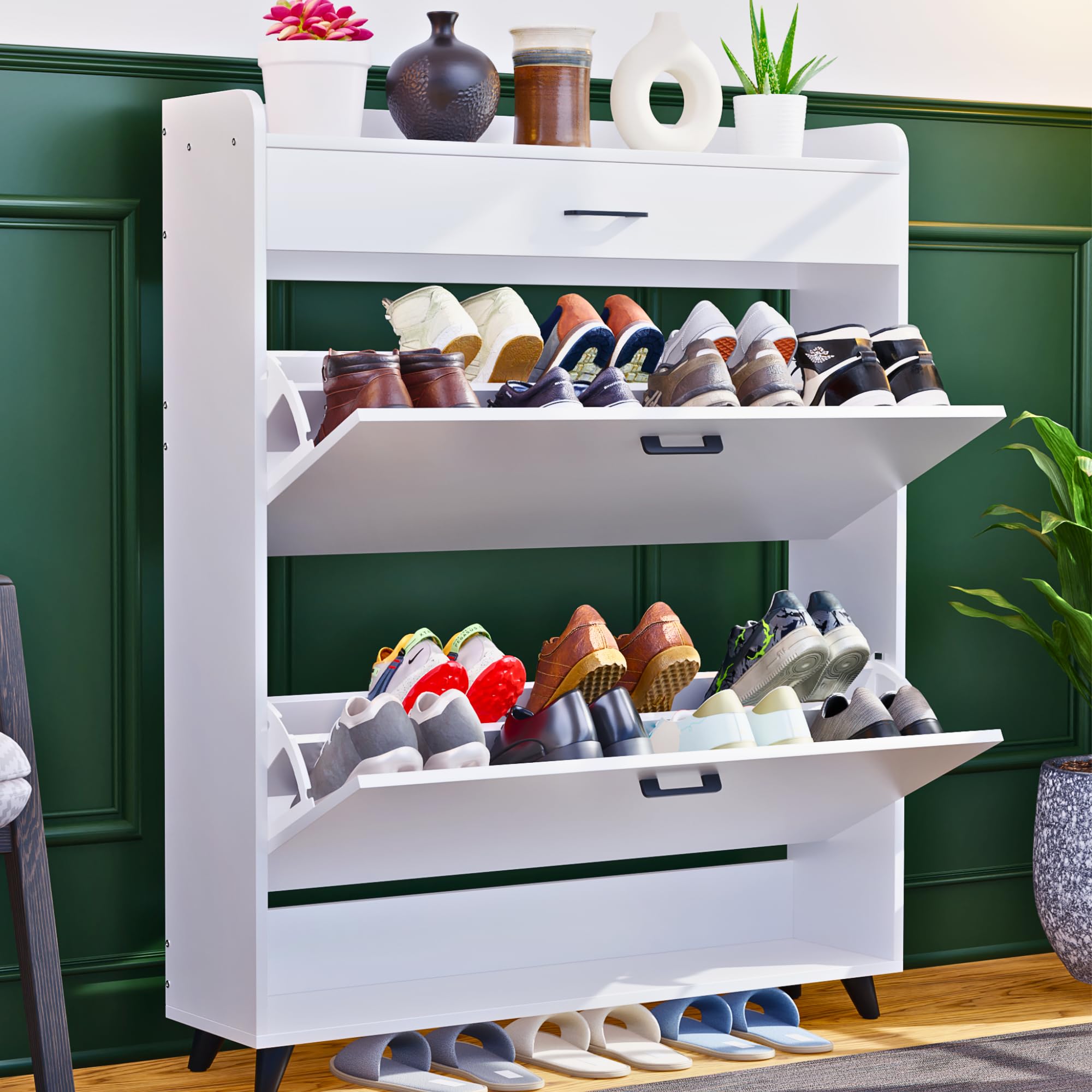 Amazon TidyHive Hidden Shoe Rack White Shoe Cabinet Storage with Drawers Pull Out Flip Down and Open Shelves Narrow Shoe Storage Cabinet for Entryway Shoe Organizer Cabinet for Slippers Boots Very well made.