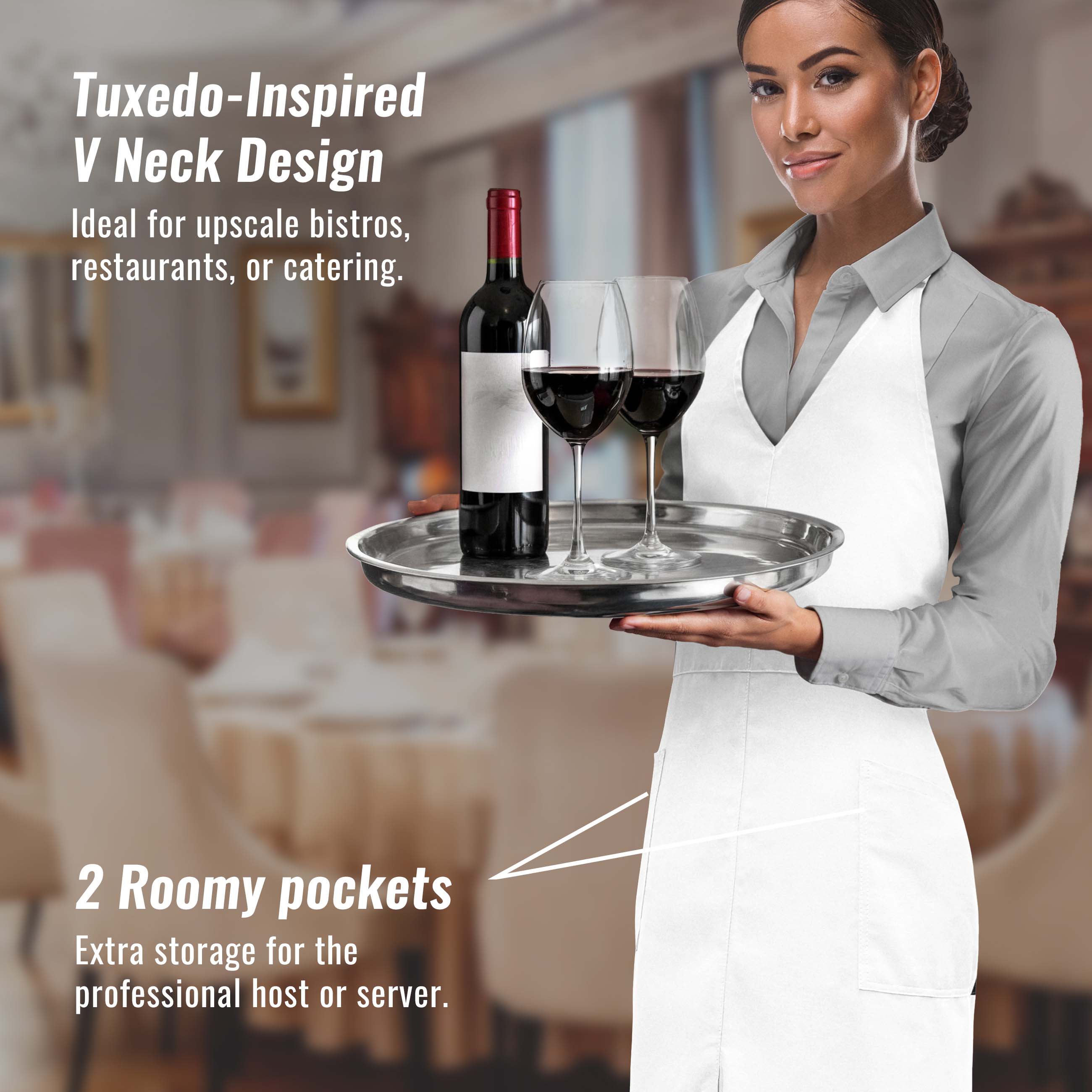 V Neck Long Apron Tuxedo Style Front Slit 2 Pockets Server Waiter Chef Bistrot Restaurant Under NY Sky Very well made.