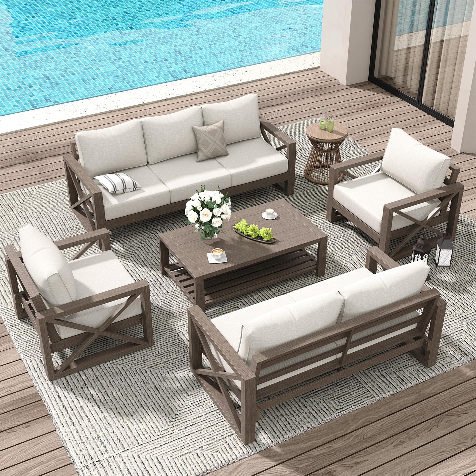 Amazon Amopatio Aluminum Patio Furniture Set 8 Pieces Modern Metal Outdoor Furniture Faux Wood Grain Finish Frame Patio Sofa Sets with 6.5 Very well made.