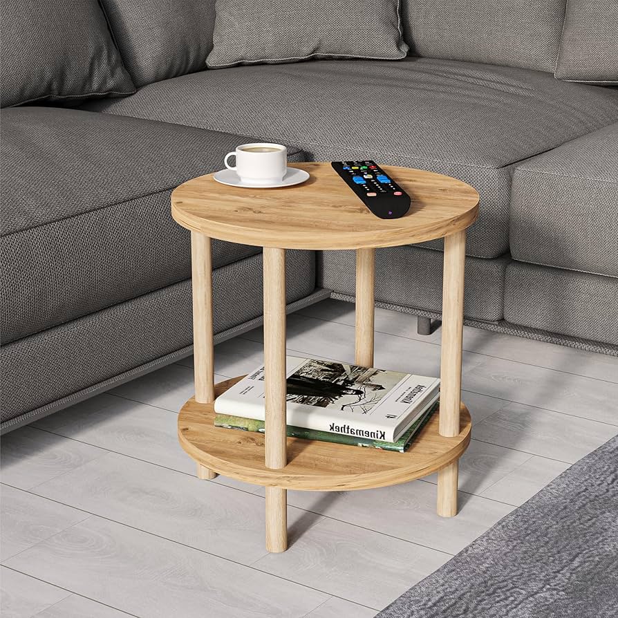 sugodesign Two Tier Wooden Sofa Table Side Table Small Round Coffee Table Elegant 2 Tier Corner Table Bookcase Flower Shelf Decorative Shelf Very well made.