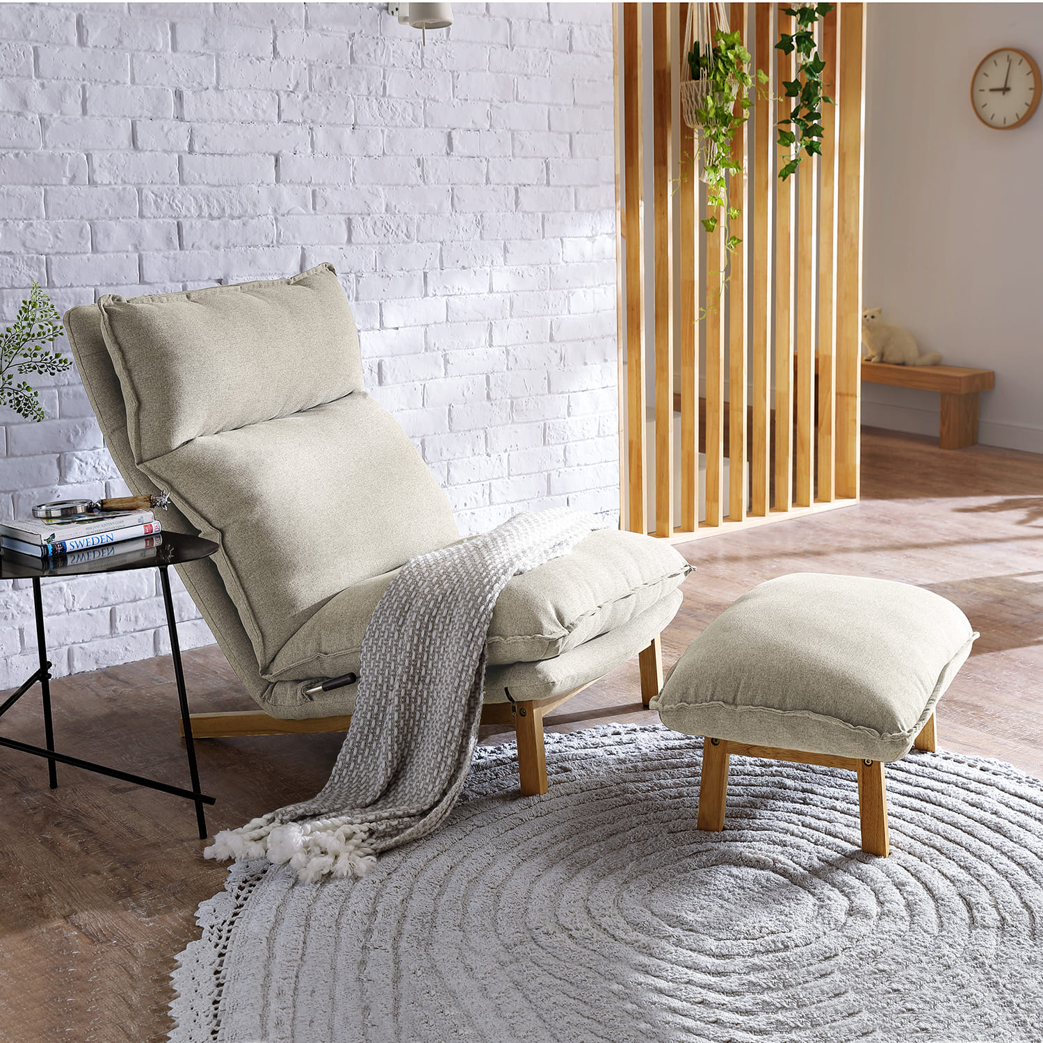 nordic modern bedroom balcony furniture solid wood velvet cream fabric living room leisure single sofa chair for reception Very well made.