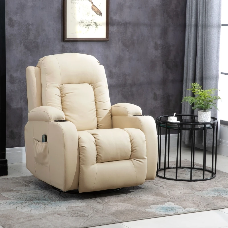 White Luxury Faux Leather Heated Vibrating 8 Point Massage Recliner Chair with 360 Swivel and Remote for living room furniture Very well made.