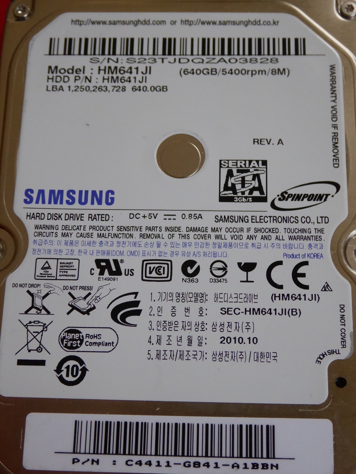 Samsung HM641JI P N C4411 G841 A1BBN 2010.10 640GB 8808993480623 eBay Very well made.