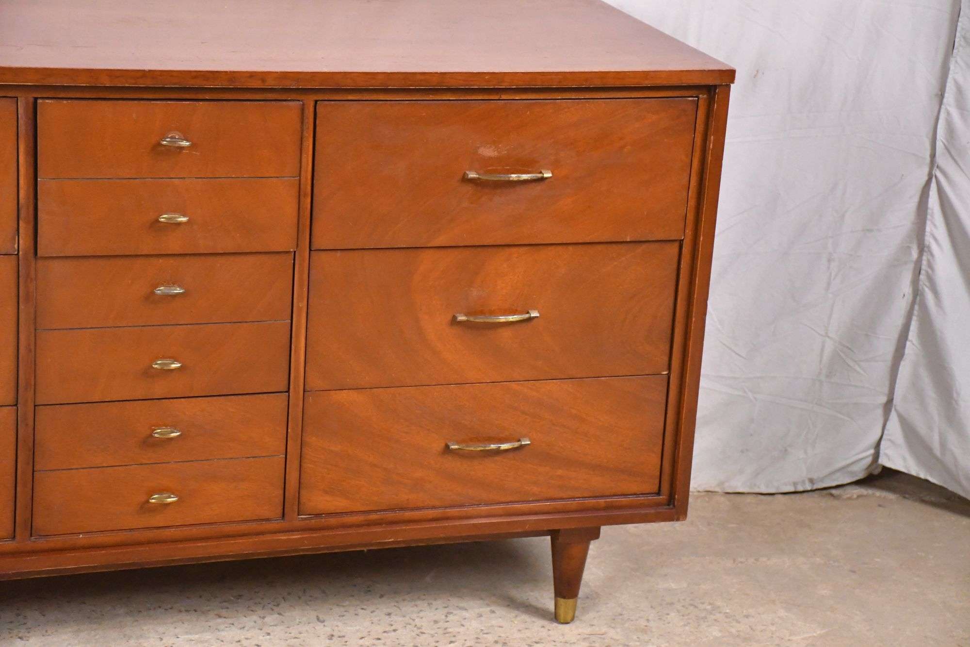 Stiehl mahogany mid century style 9 drawer triple dresser 74 8100 R.H. Lee Co. Auctioneers Very well made.
