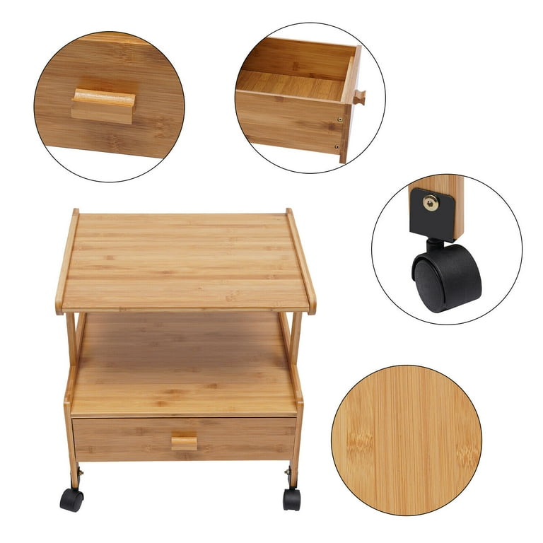 2 Tier Bamboo Printer Stand with File Drawer Printer Cart W Wheels Office Shelf 88lbs Under Desk Rolling Printer Stand Very well made.