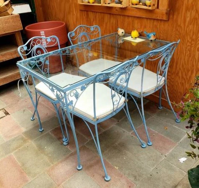 VINTAGE WOODARD WROUGHT Iron Patio Set. Glass top table with 4 chairs 700.00 PicClick Very well made.