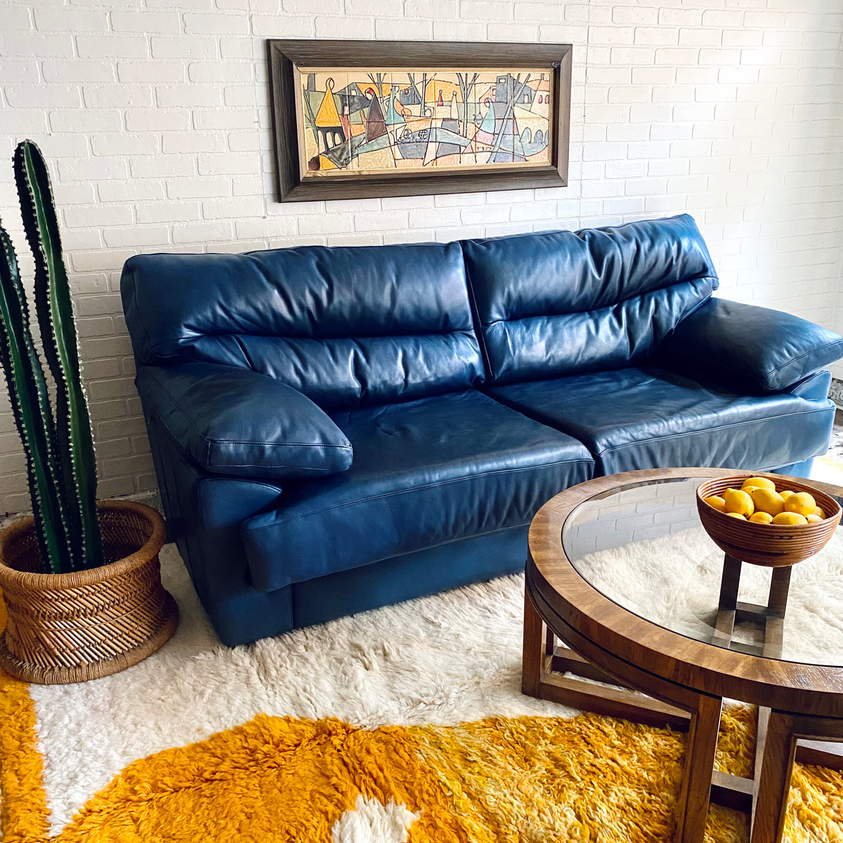 Vintage Navy Blue Leather Sofa Very well made.