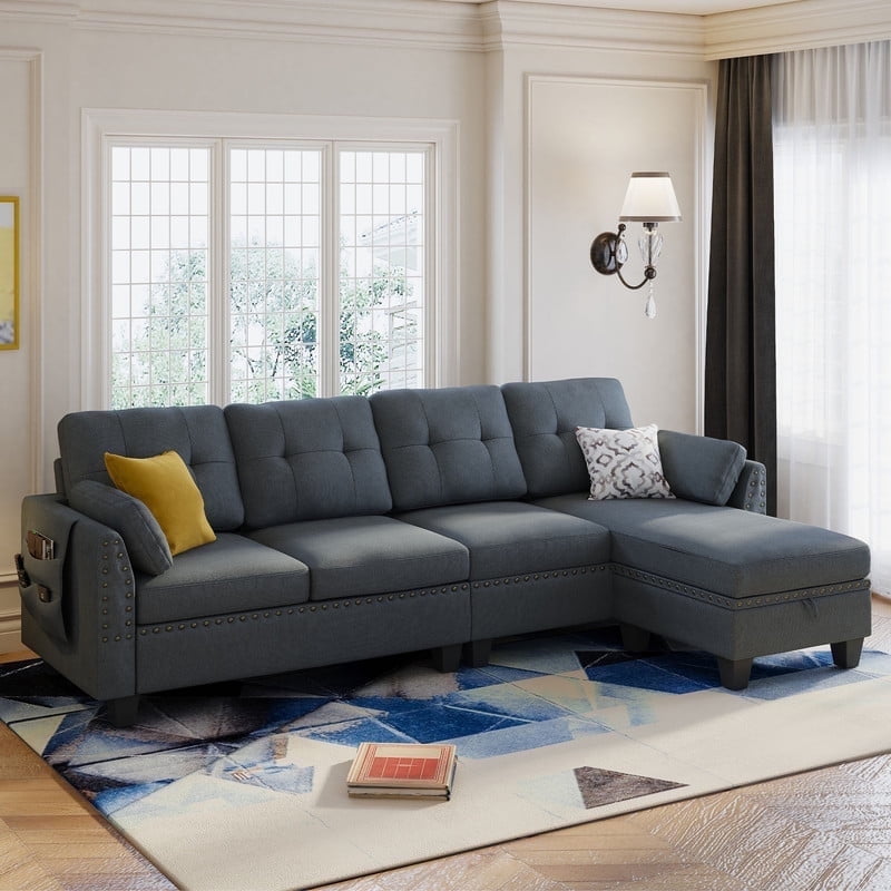 HONBAY L Shaped Sectional Sofa with Storage Ottoman Bluish Gray Fabric High Density Foam Cushions Walmart Very well made.