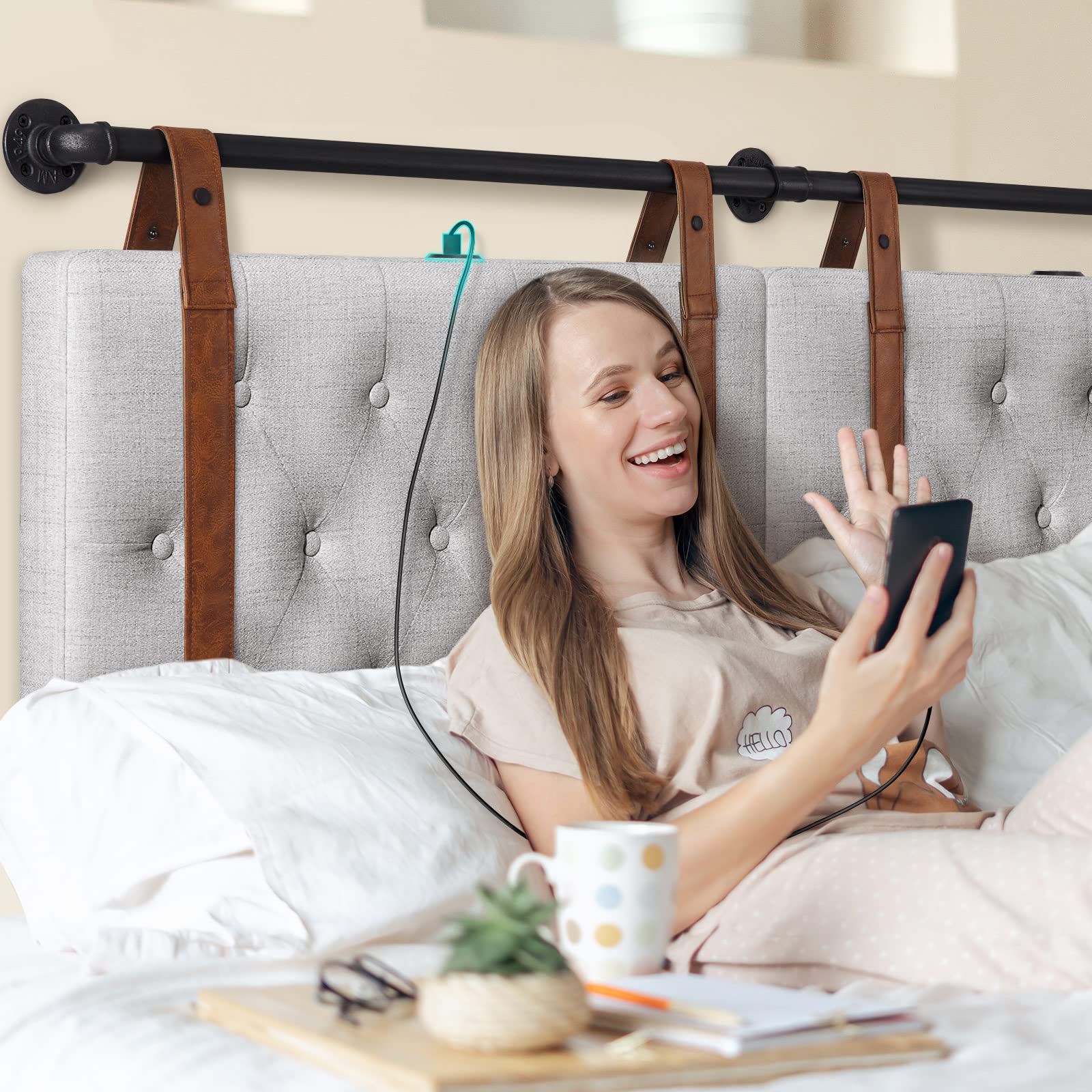 GREENSTELL Wall Mount Headboard with USB for King Size Bed Linen Fabric Headboard Only Industrial Pipe Modern Style Gray Hanging Head Boards Durable Comfortable Button Upholstered for Bedroom Very well made.